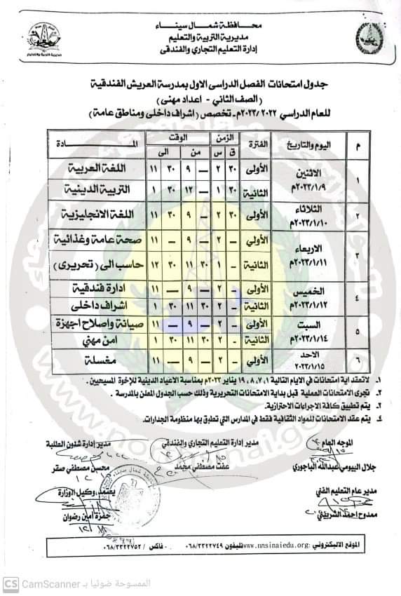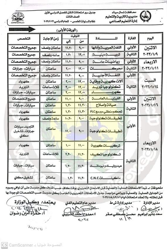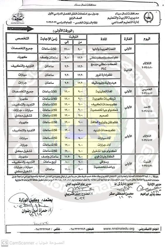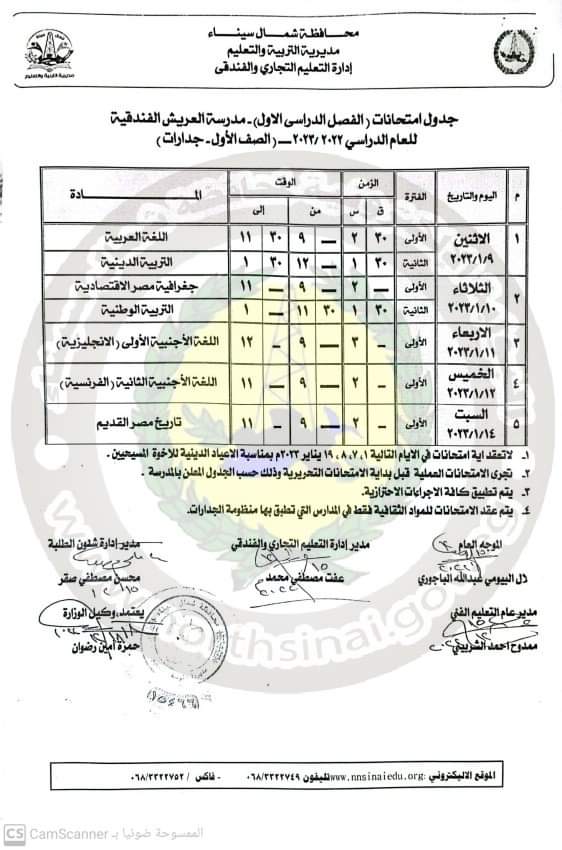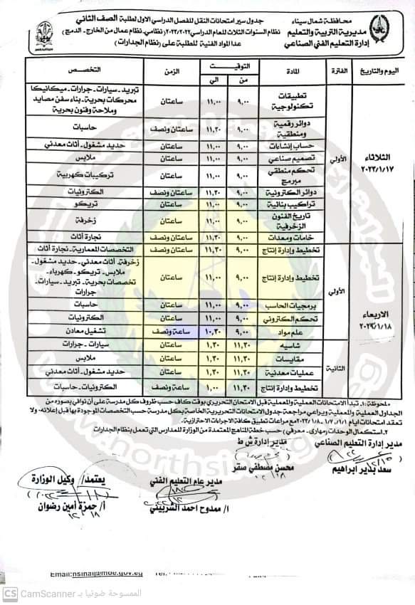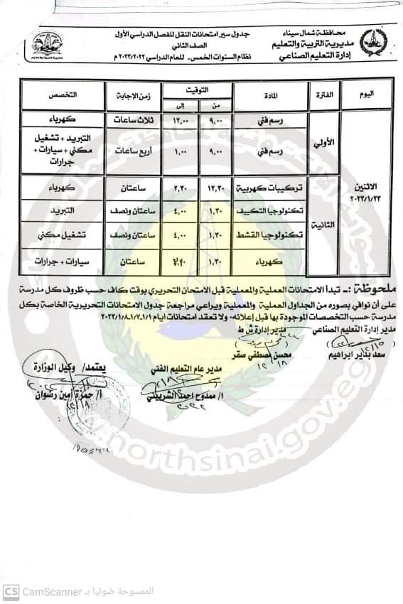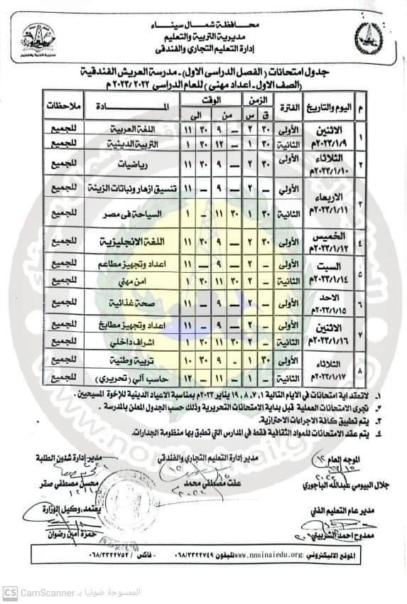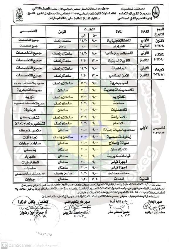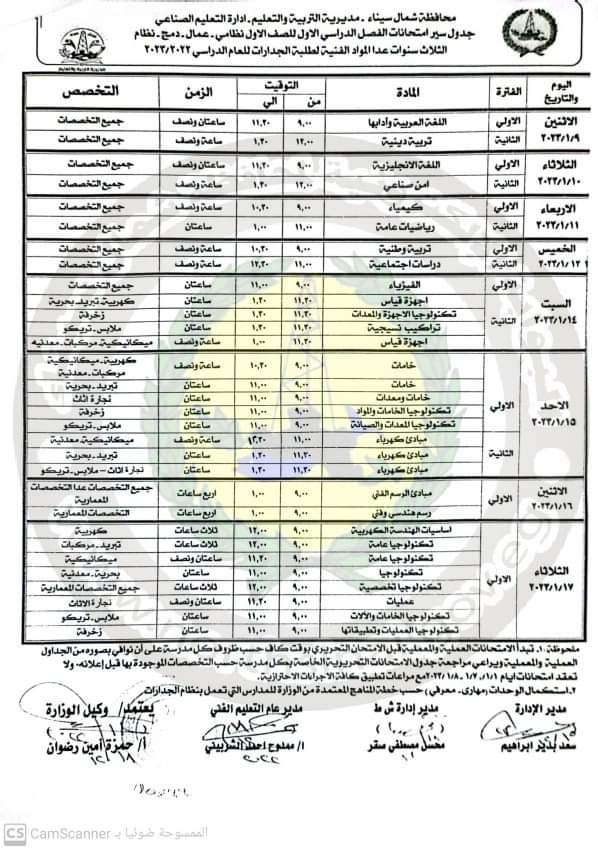 أعلنت مديرية التربية والتعليم بمحافظة شمال سيناء، جداول امتحانات الفصل الدراسي الأول بالتعليم الفني بجميع مراحله.