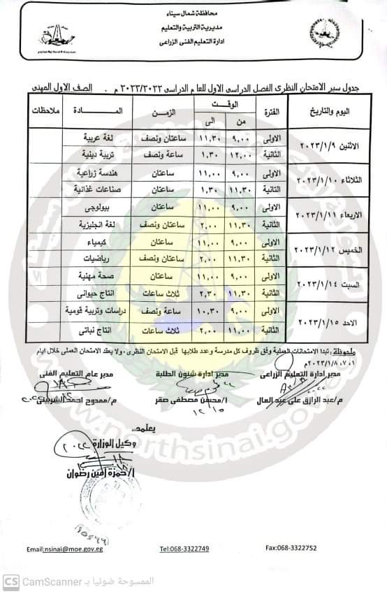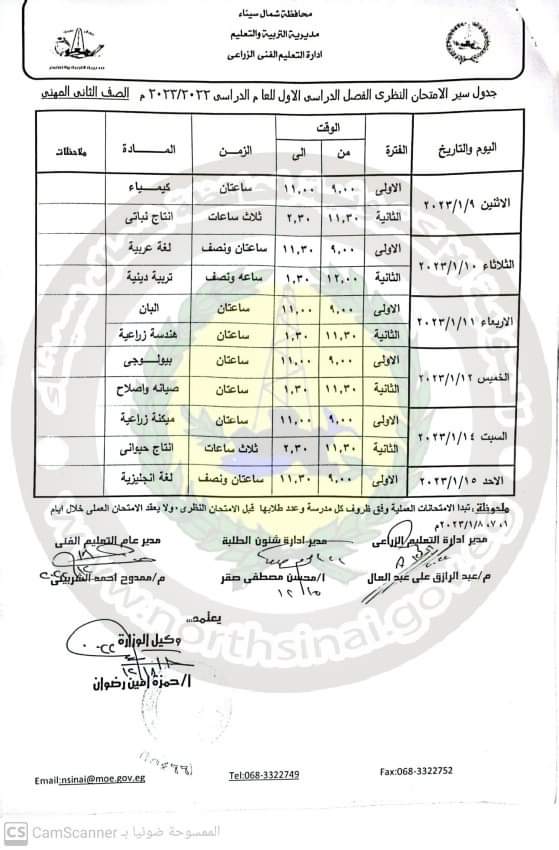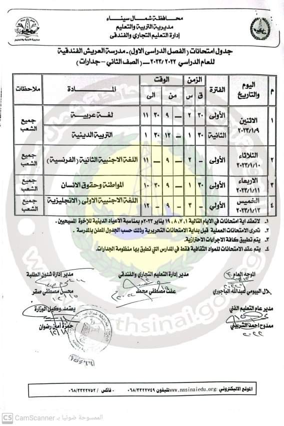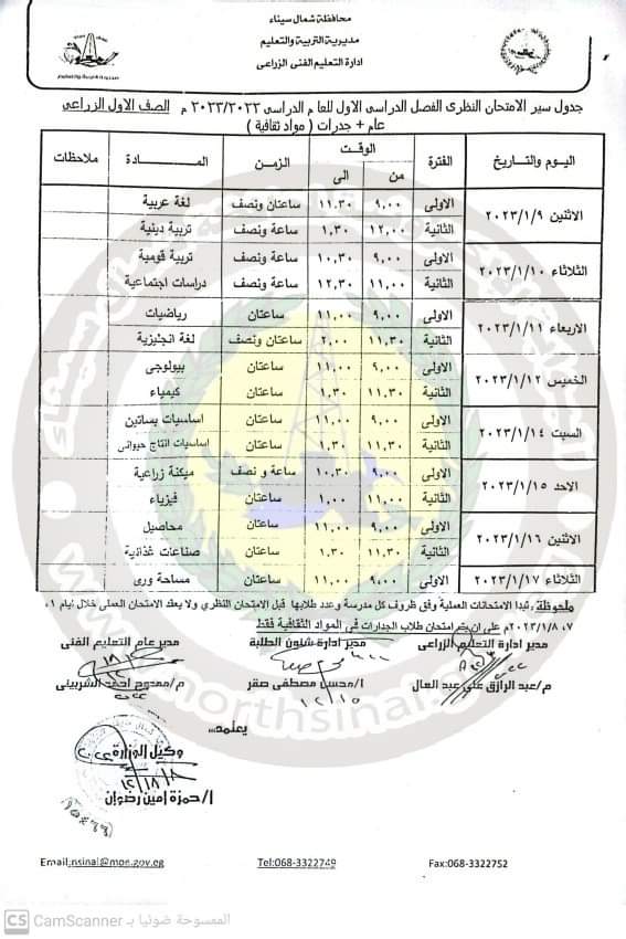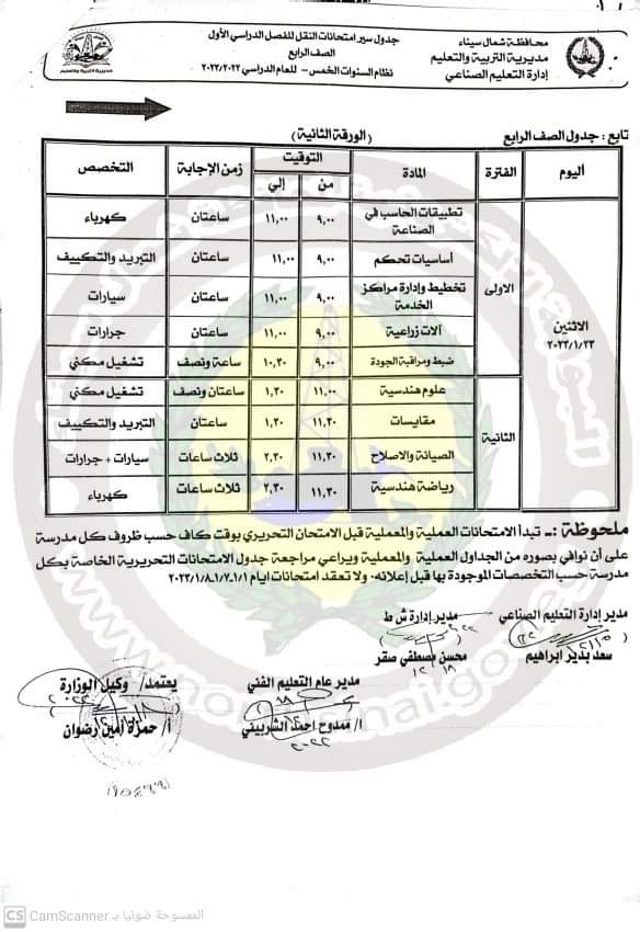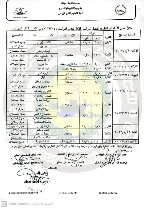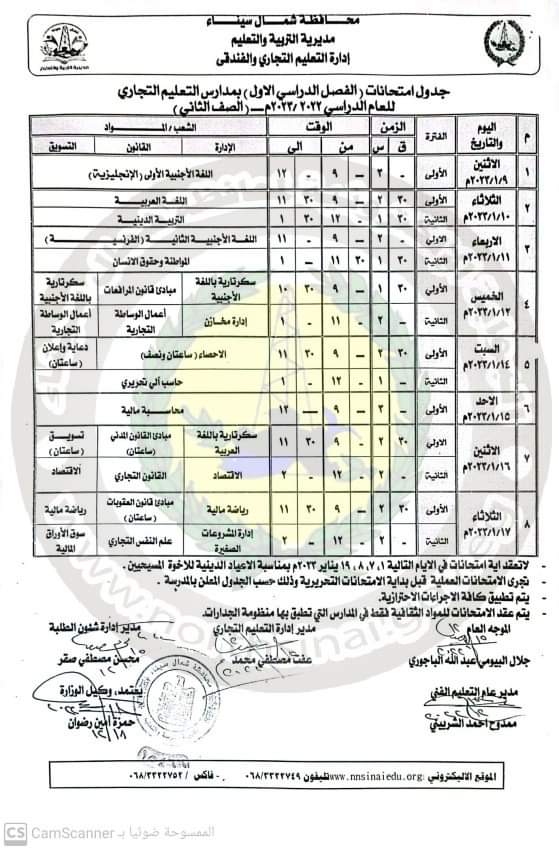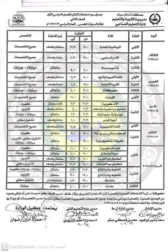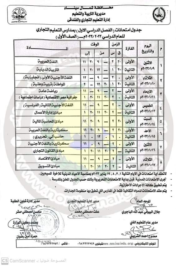 أعلنت مديرية التربية والتعليم بمحافظة شمال سيناء، جداول امتحانات الفصل الدراسي الأول بالتعليم الفني بجميع مراحله.