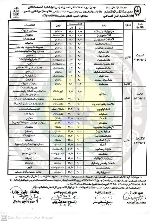 تعليم شمال سيناء يعلن جداول امتحانات الفصل الدراسي الأول للتعليم الفني
