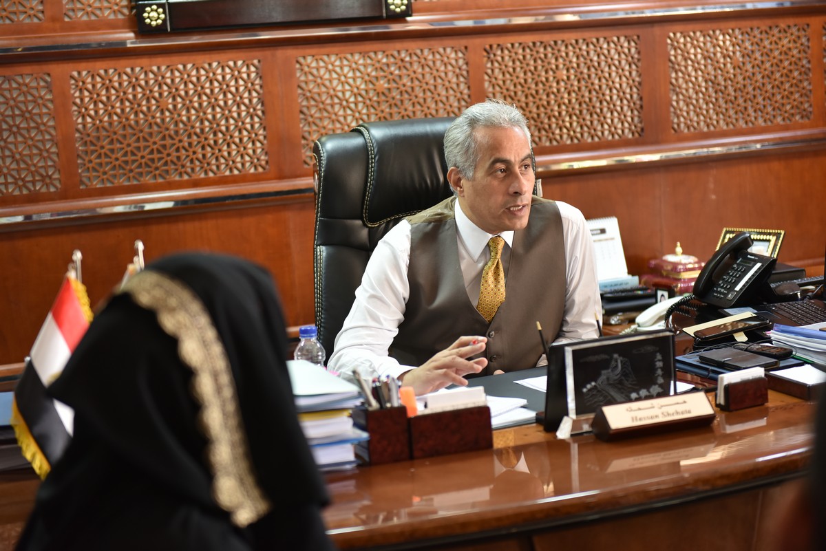 واستقبل الوزيراليوم بمكتبه سليمة جبلي إحدى المدربات على مهن التطريز والمشغولات التراثية، والتي إقترحت على الوزير شحاتة خلال جولته أهمية توفيرعربة متنقلة لتدريب الفتيات في سانت كاترين، والمدن المجاورة على مهنة المشغولات اليدوية خاصة التراثية،لتأهيلهم لسوق العمل، وبالتالي توفير فرص عمل وحياة كريمة لهم، ولتكون تجربة أو نواة لعربات مماثلة ومهن مختلفة.
