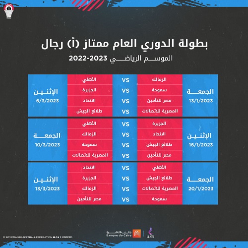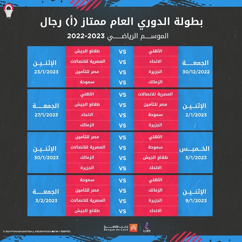 تنطلق منافسات دور ربع نهائي بطولة دوري السوبر المصري لكرة السلة، نهاية شهر ديسمبر الجاري بمشاركة 8 فرق على رأسها الأهلي والزمالك والاتحاد السكندري.