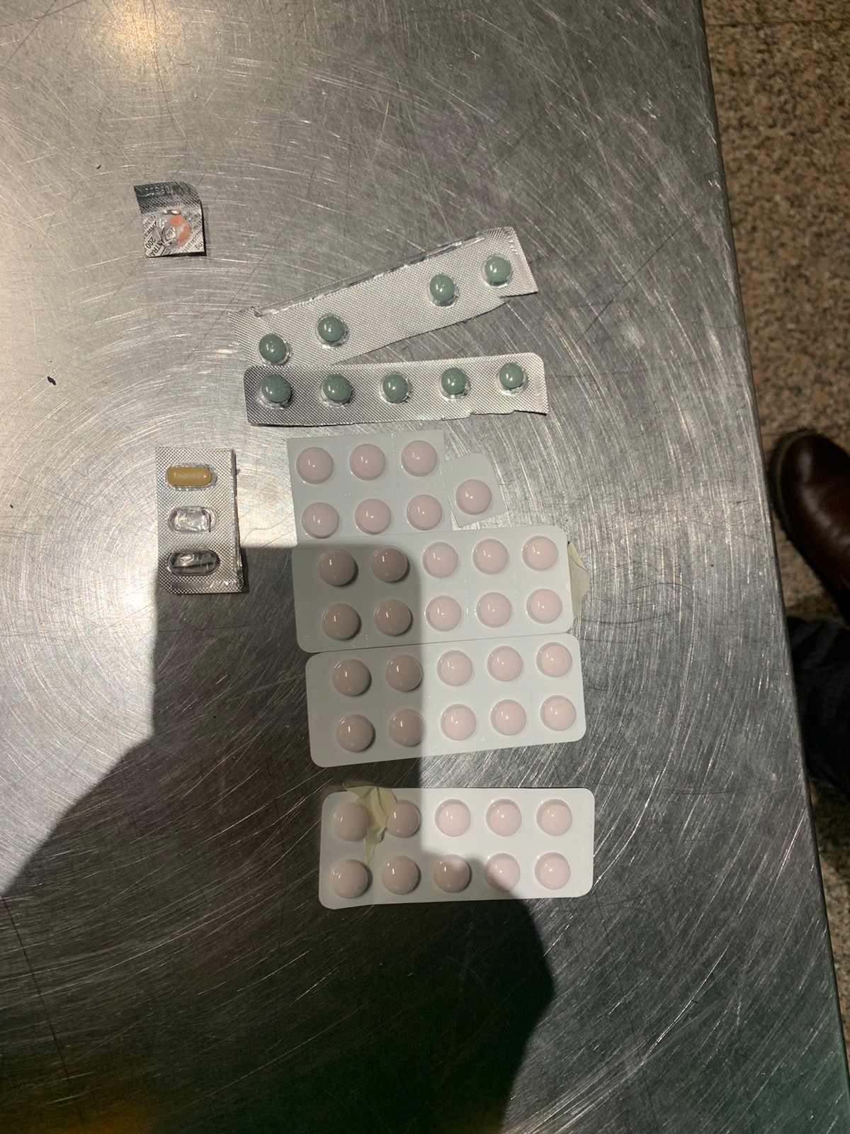 قام جورج الفونس مدير الحركة المشرف على صالة الوصول بمبني الركاب رقم 3 بتكليف كل من كريم محمد يوسف ومصطفي حسن عبد العزيز مأمورا الجمرك بتفتيش حقائب الراكب يدويا مما اسفر عن ضبط 3 ان انواع من الممنوعات وهي المخدرات والأسلحة البيضاء أو ما يجب الإفصاح عنه وهي العملة الأجنبية أكثر ما يوازي 10 الاف دولار أمريكي، وبعدها قام تامر قاسم مدير الإدارة بالإنابة بتكليف كريم يوسف وعماد صلاح سالم مأمورا الجمرك بتفتيش الراكب ذاتيا مما اسفر عن ضبط اقراص مخدرة اخري، وكان إجمالي المضبوطات في الحرز الاول وهو الخاص بالمخدرات 4 زجاجات بداخلهم سائل لمواد مخدرة و29 قرص لعقاقير مدرجة بجداول المخدرات وفي الحرز الثاني وهو الخاص بالسلاح 4 مطواة افاد تقرير ادارة الحماية المدنية بالمطار بانه محظور حيازتهم طبقا للقانون.