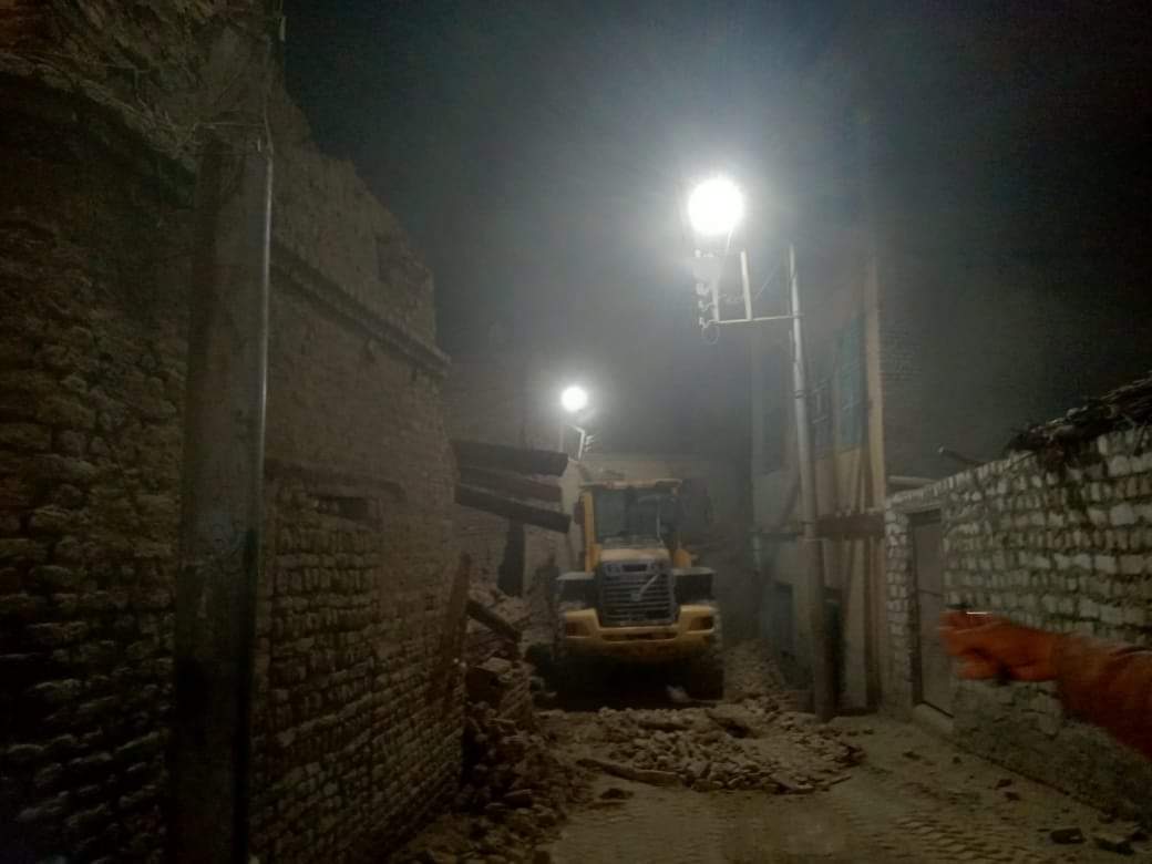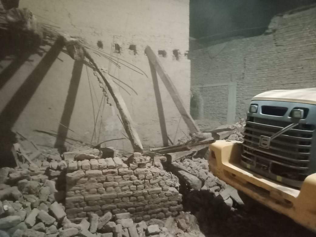 رفع أنقاض منزل الشنهورية المنهار وإعادة فتح الطريق بقنا