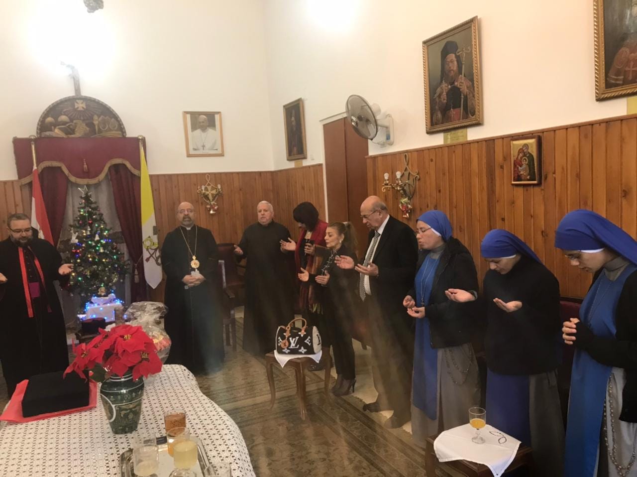 جاء ذلك بمشاركة القمص بيشوي فوزي، الوكيل البطريركي تضمن اللقاء تبادل التهنئة، ومناقشة آخر الأخبار الخاصة بالكنيسة الكلدانية، بالإضافة إلى زيارة كابيلا المقر البطريركي، وشرح الرموز الخاصة بها.