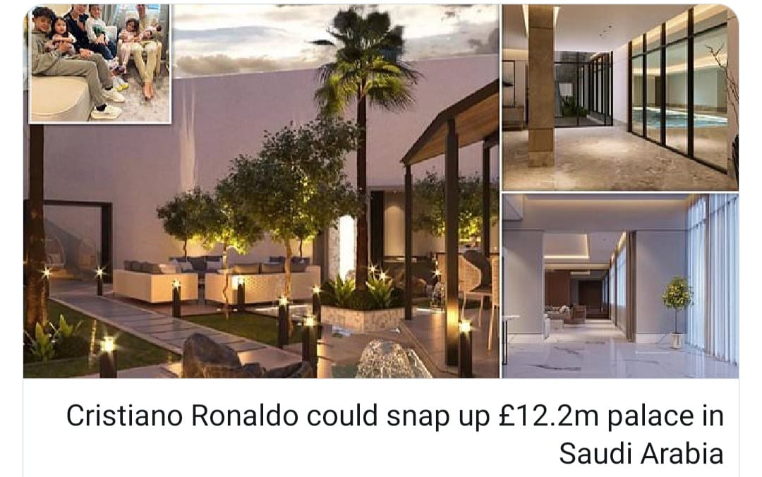 وقالت صحيفة ديلي ميل البريطانية إن النجم كريستيانو رونالدو سيحصل على قصر في مدينة الرياض حال انتقاله لصفوف نادي النصر، يحتوي على 8 غرف نوم، شلال، مناطق خضراء واسعة، مسبح أولمبي وثلاث ڤلل إضافية.