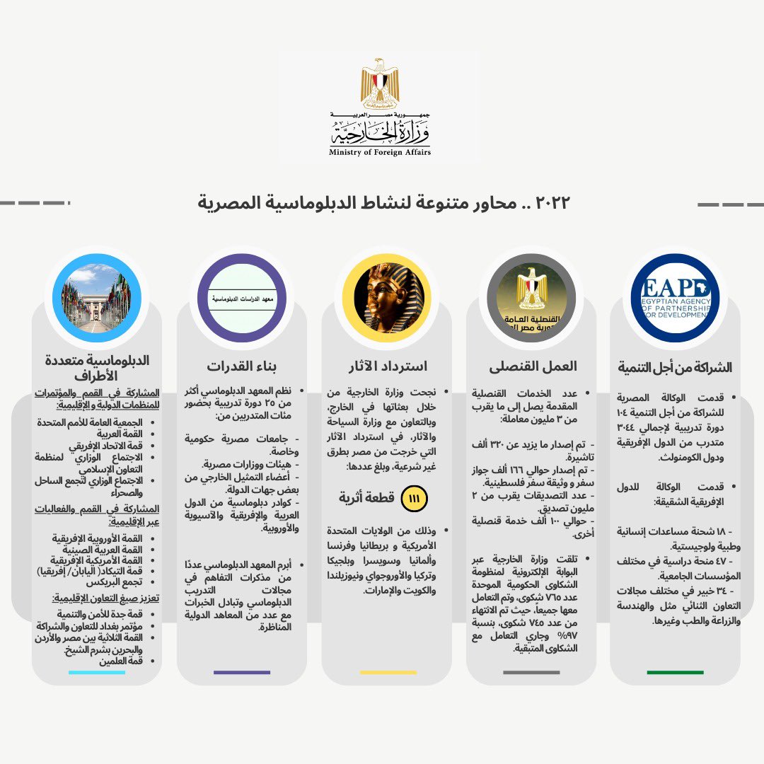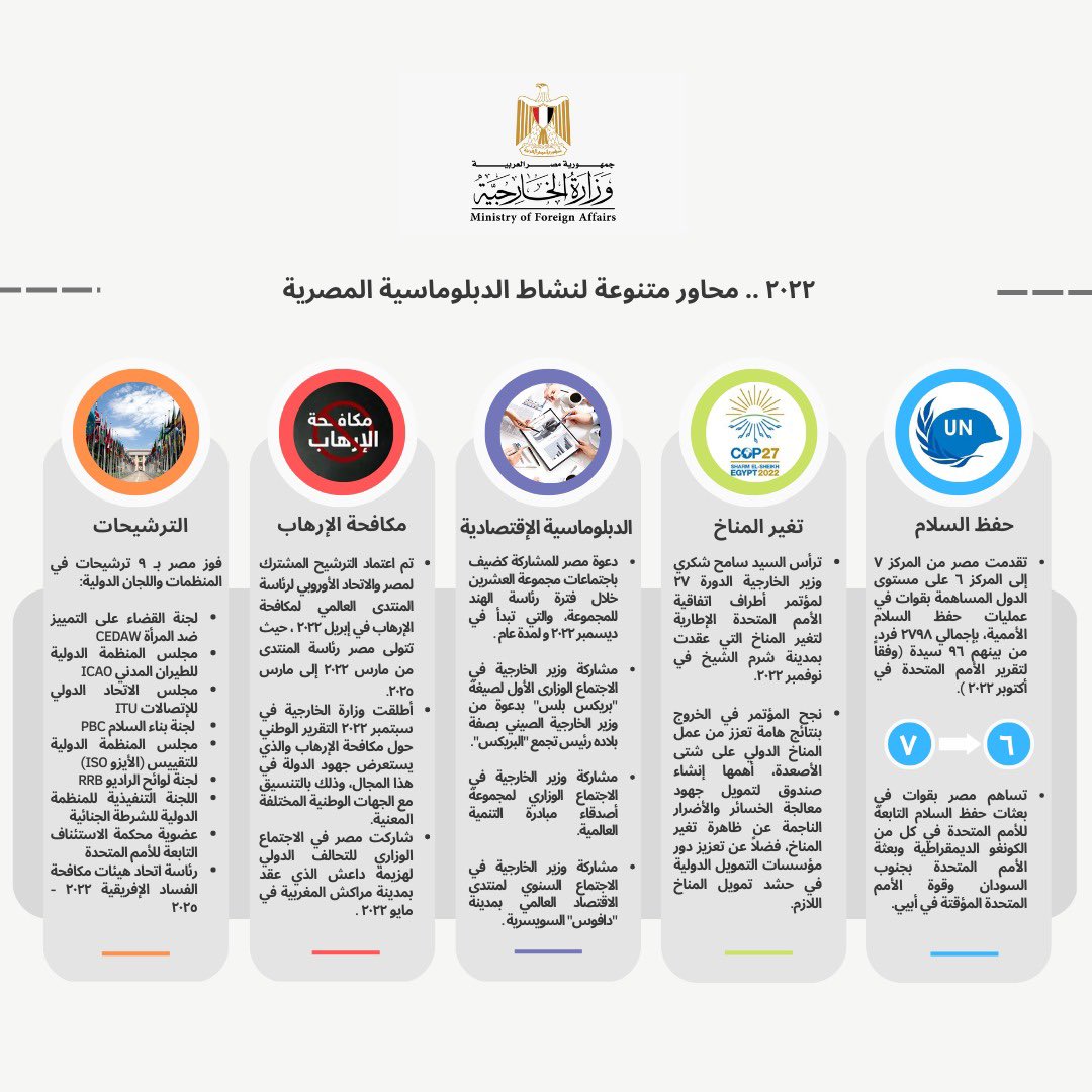 الخارجية تنشر أهم المحطات في حصاد عمل الدبلوماسية المصرية خلال 2022
