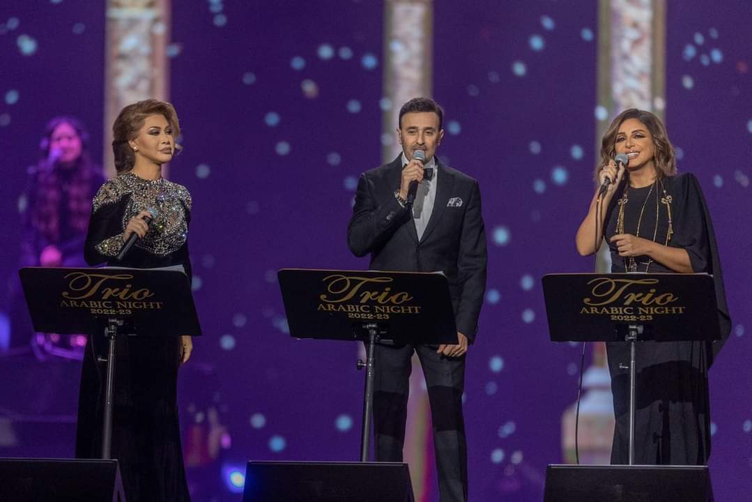 أحيا عدد من نجوم الغناء العرب حفلا ضخما، مساء أمس السبت 31 ديسمبر 2022، على مسرح محمد عبده أرينا، في ليلة تريو، ضمن حفلات موسم الرياض بالمملكة العربية السعودية، حيث احتضن الحفل 13 فنانًا، بقيادة المايسترو أمير عبد المجيد، والمايسترو مدحت خميس، والمايسترو هاني فرحات.