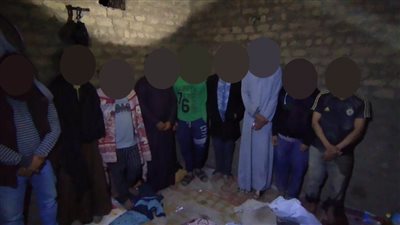 واصطحبت القوة الأمنية المتهمين وهم: م. ع. إ - 58 عاما - عامل، وولديه ع. م. ع، ع. م. ع، وزوجة المتهم الأول، كما تم ضبط كلا من ط. س. س، وكذلك ع. ح. ع - 45 عامًا - عامل، وم. ع. س - 46 عامًا عامل - مقيمين قليوب التابعة لمحافظة القليوبية، كما تم ضبط ر. س. م - 45 عامًا، ض. ع. ع - 22 عامًا - مقيمان القناطر الخيرية بمحافظة القليوبية، وضبط م. ع. ح - 30 عامًا - مقيم طما سوهاج.
