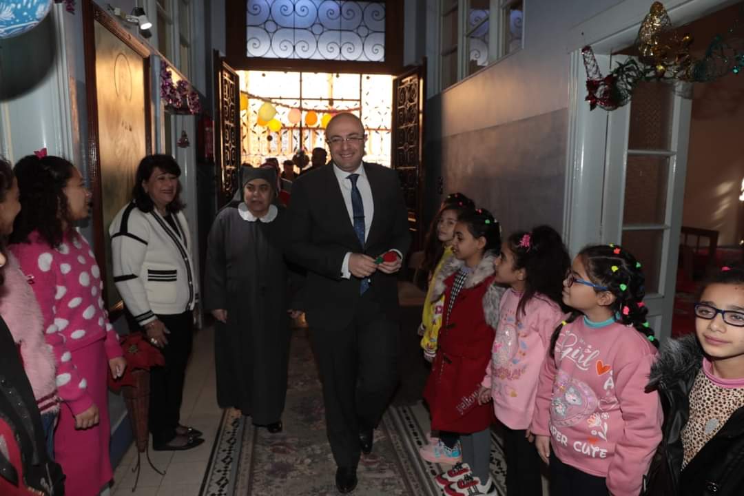 محافظ بني سويف يُعيّد على أطفال أحد دور الأيتام ويشاركهم فرحتهم بعيد الميلاد المجيد