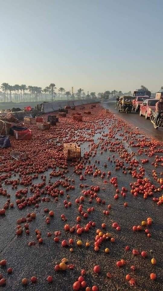 وتلقى اللواء مروان حبيب مدير أمن الدقهلية إخطارًا من اللواء محمد عبد الهادي مدير المباحث الجنائية، بوقوع حادث انقلاب سيارة نقل محمله بالطماطم على طريق جمصة، وتوقف حركة المرور على الطريق لانقلاب الحمولة.