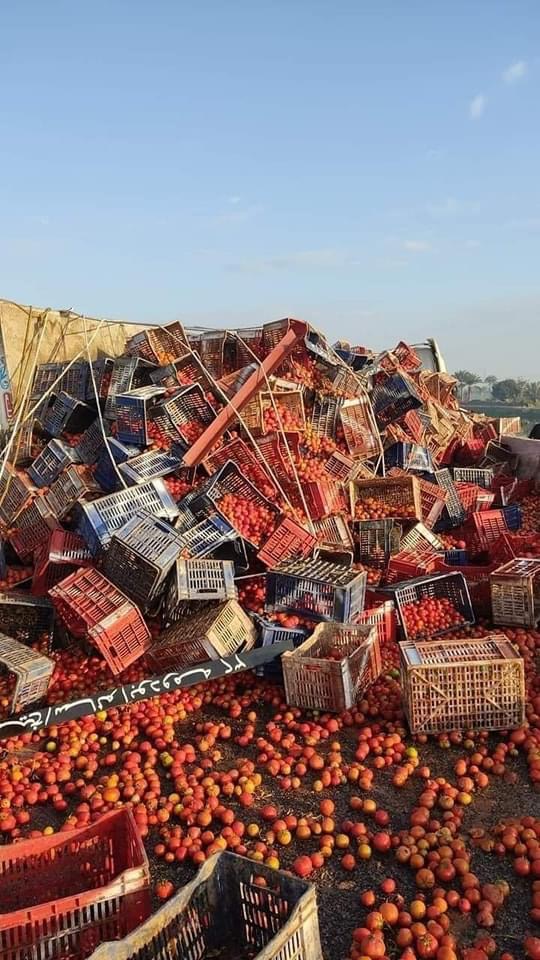 مصرع سائق في انقلاب سيارة نقل محملة بالطماطم على طريق جمصة