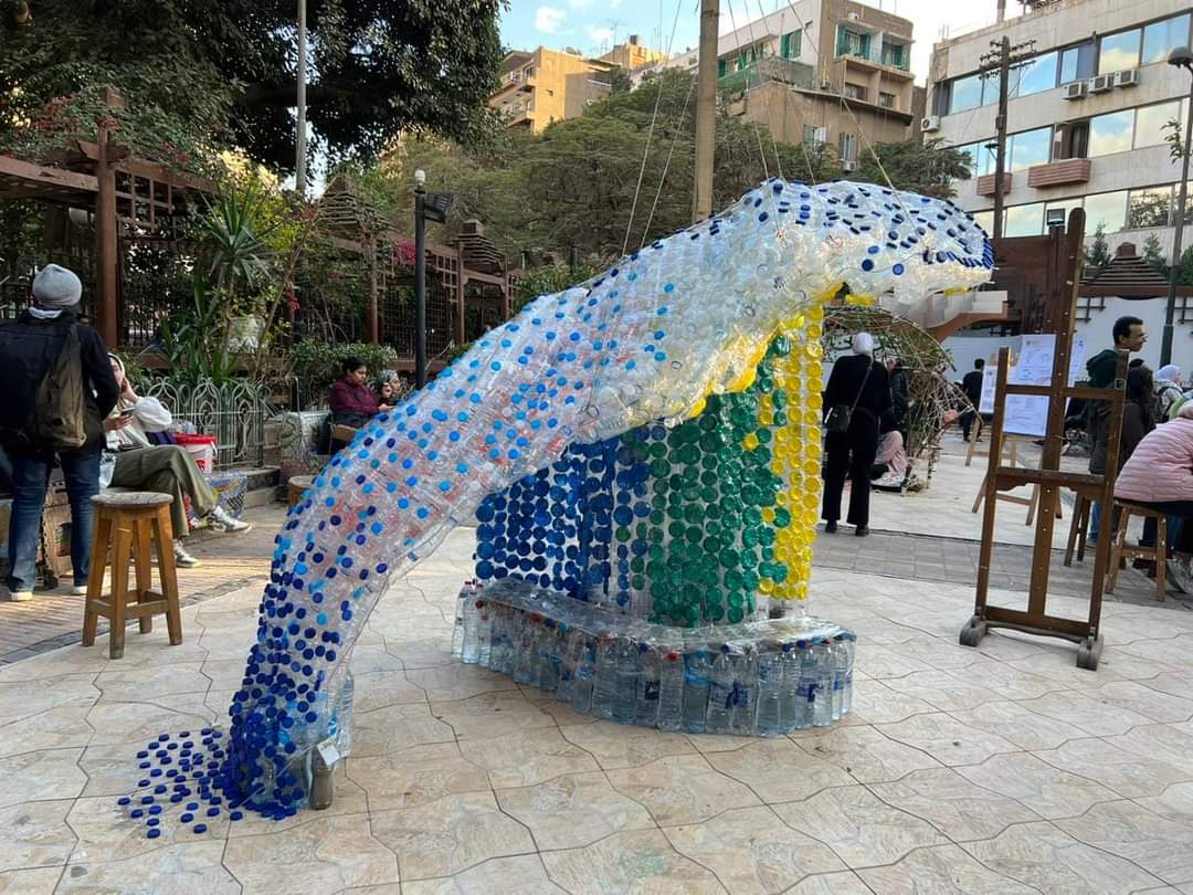 - التجربة الإنشائية بعمل إعادة تدوير للزجاجات والماكت على شكل موجة البحر، للتوعية بخطر البلاستيك على البحار والمحيطات.