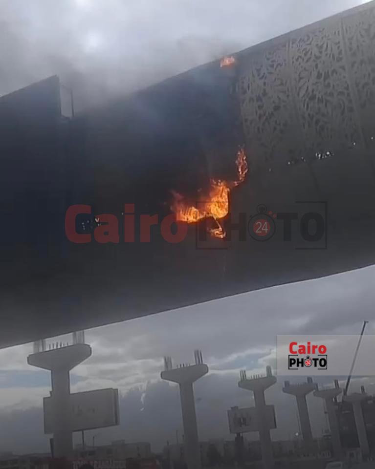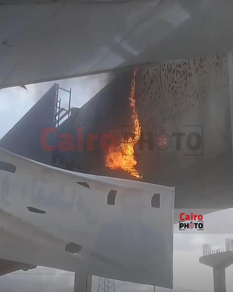 حريق بكوبري مشاة بالقرب من هايبر وان بـ أكتوبر| صور