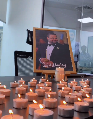 ذهب زملاء وديع جورج وسوف إلى محل عمله في قطر وأشعلوا الشموع لـ راحة نفسه بعد رحيله إثر أزمة صحية حادة.