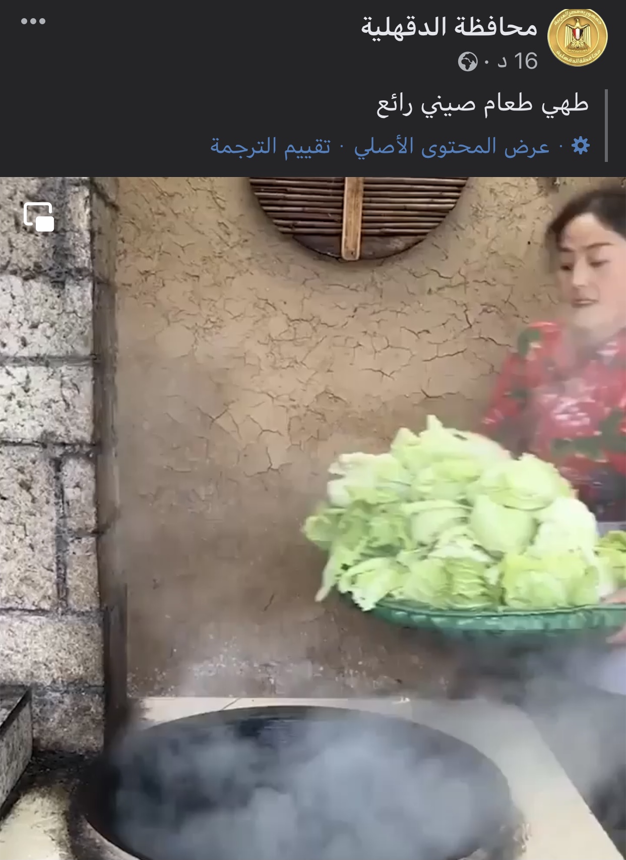 اختراق الصفحة الرسمية لمحافظة الدقهلية ونشر فيديوهات للطهي الصيني.. ومتابعون: إحنا مالنا بالكلام ده