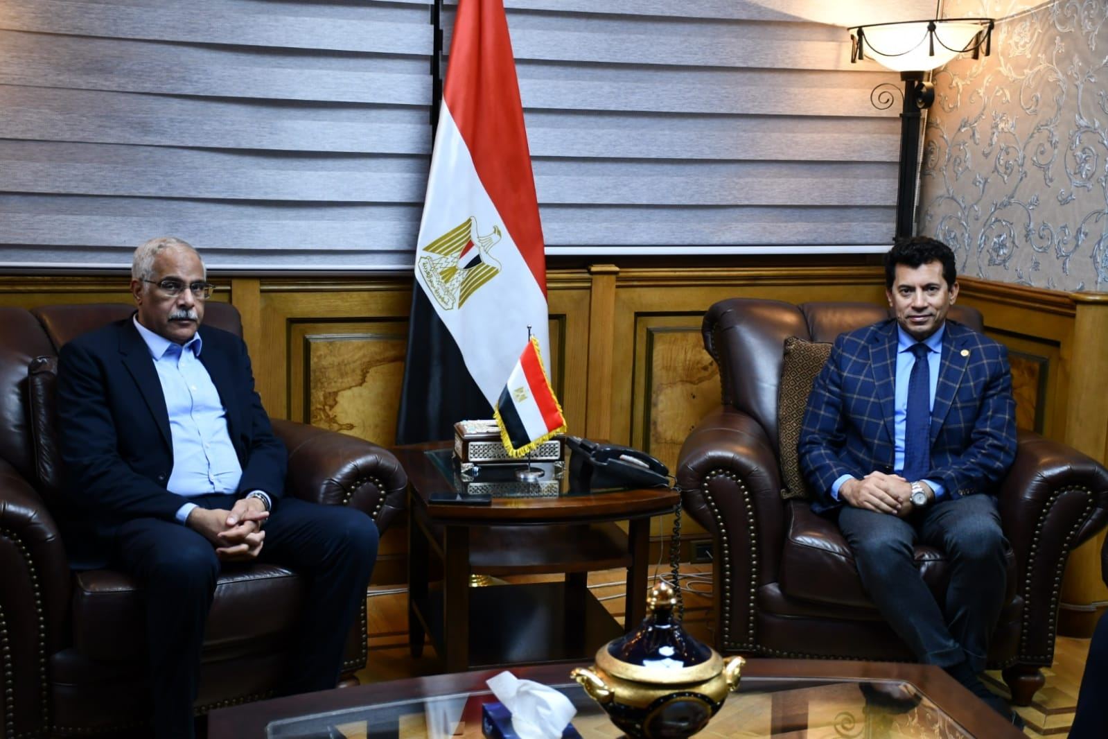 كما التقى وزير الشباب والرياضة مع الأستاذ جمال علام رئيس الاتحاد المصرى لكرة القدم، وتناول اللقاء استعراض خطة الاتحاد المتعلقة بتطوير جميع منتخبات كرة القدم المصرية مواليد بدءًا من منتخب 2002 وحتى المنتخب الوطني في ضوء المنافسات القارية والأولمبية التي ستخوضها المنتخبات خلال الفترة المقبلة، إضافة إلى تعظيم دور الاتحاد في مجال دعم الممارسة الرياضية واكتشاف المواهب في كرة القدم من خلال المشروعات القومية لاكتشاف الموهوبين في كرة القدم ومنها مشروع كابيتانو ومشروع ستارز أوف ايجيبت وأكاديميات كرة القدم، كما تناول اللقاء تشغيل مشروع الهدف وتشغيله بشكل يضمن تعظيم العوائد المتحققة من خلاله بما يخدم المنتخبات المصرية.