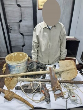 يأتي ذلك في إطار جهود أجهزة وزارة الداخلية لمكافحة الجريمة بشتى صورها لاسيما جرائم الحفر بقصد التنقيب غير المشروع عن الآثار.