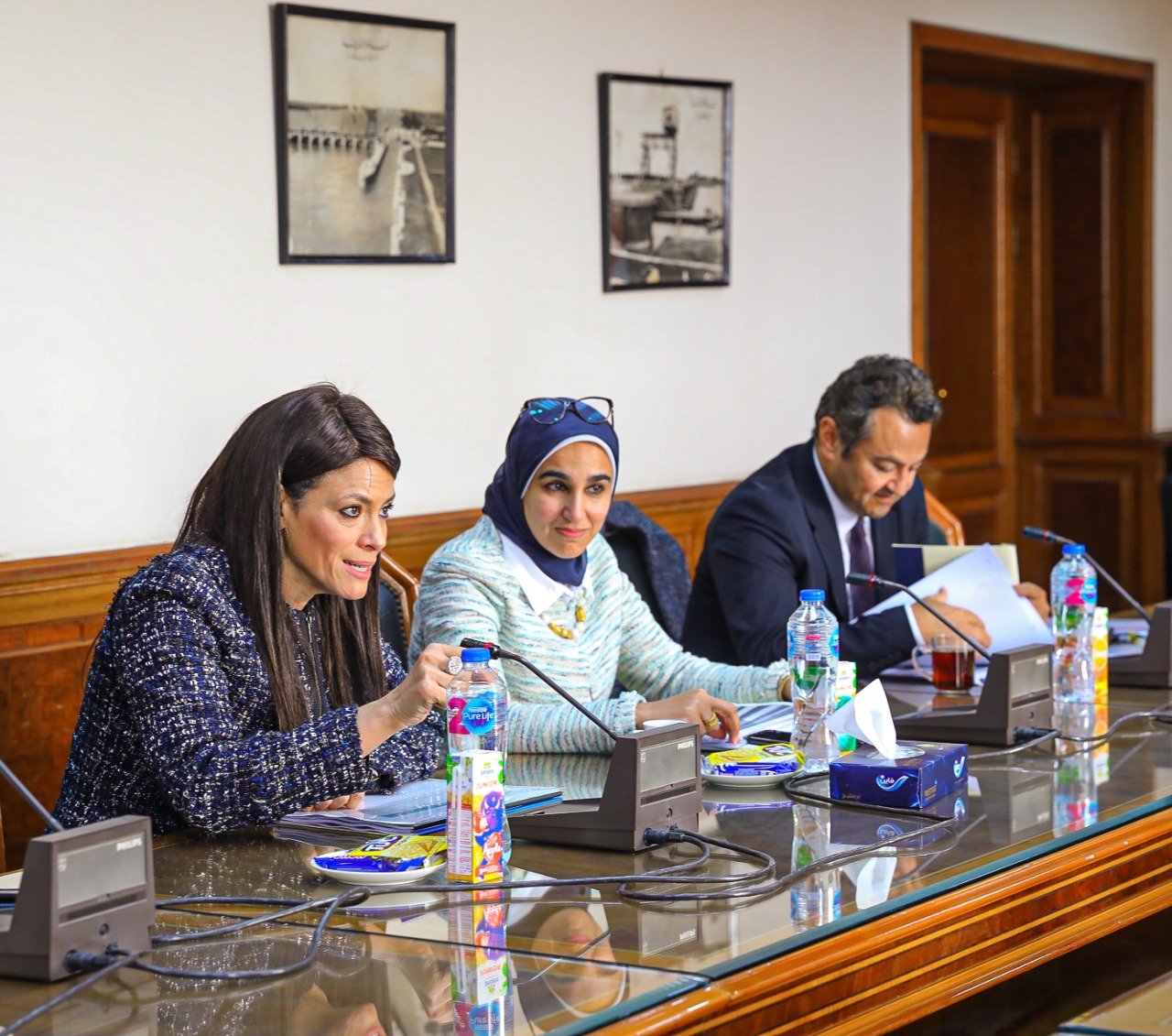 عقدت الدكتورة رانيا المشاط، وزيرة التعاون الدولي، والدكتور هاني سويلم، وزير الموارد المائية والري، اجتماعًا موسعًا بمقر وزارة الموارد المائية والري، لبحث آخر المستجدات والتفاصيل الفنية الخاصة بالأعمال والمشروعات المدرجة في مجالي المياه والغذاء ضمن المنصة الوطنية للمشروعات الخضراء "برنامج نُوَفِّي"، ومتابعة موقف المشروعات الجارية في قطاع الموارد المائية والري ومشروعات الأمن الغذائي والممولة من شركاء التنمية.
