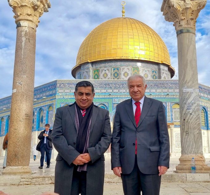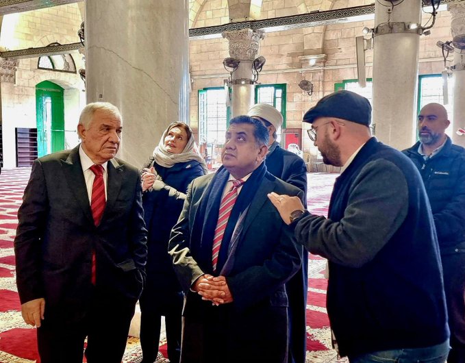زار وزير شئون الشرق الأوسط البريطاني، اليوم الخميس، القدس الشريف، والتقى خلال الزيارة بمدير عام أوقاف القدس الشيخ عزام الخطيب واستمع إلى الأهمية الدينية والثقافية والتاريخية للمسجد الأقصى.