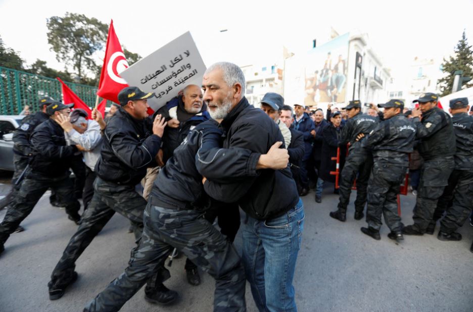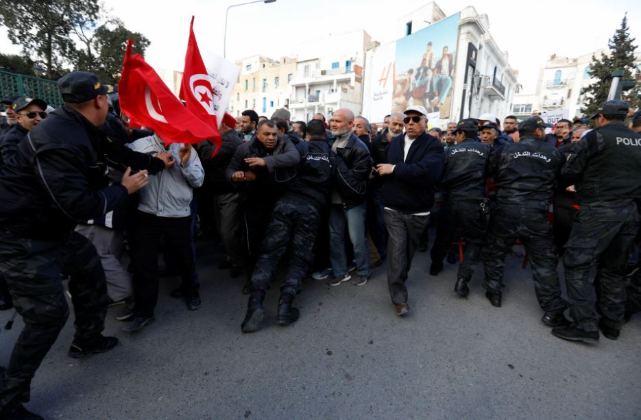 وأوضحت وكالة رويترز، أنه تواجد مئات المحتجين في مكان واحد، حيث حضر عدد كبير من رجال كبير للشرطة خارج مبنى وزارة الداخلية في شارع الحبيب بورقيبة، إلى وجود عدد من سيارات ضخ المياه لتفريق التظاهرين.