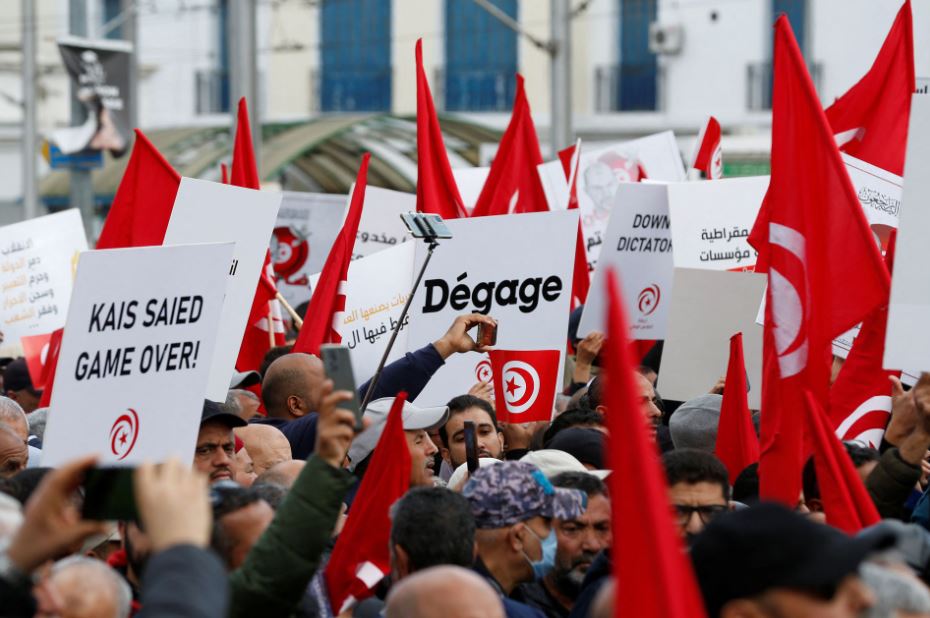 في ذكرى الثورة.. تظاهرات في تونس تطالب برحيل الرئيس قيس سعيد