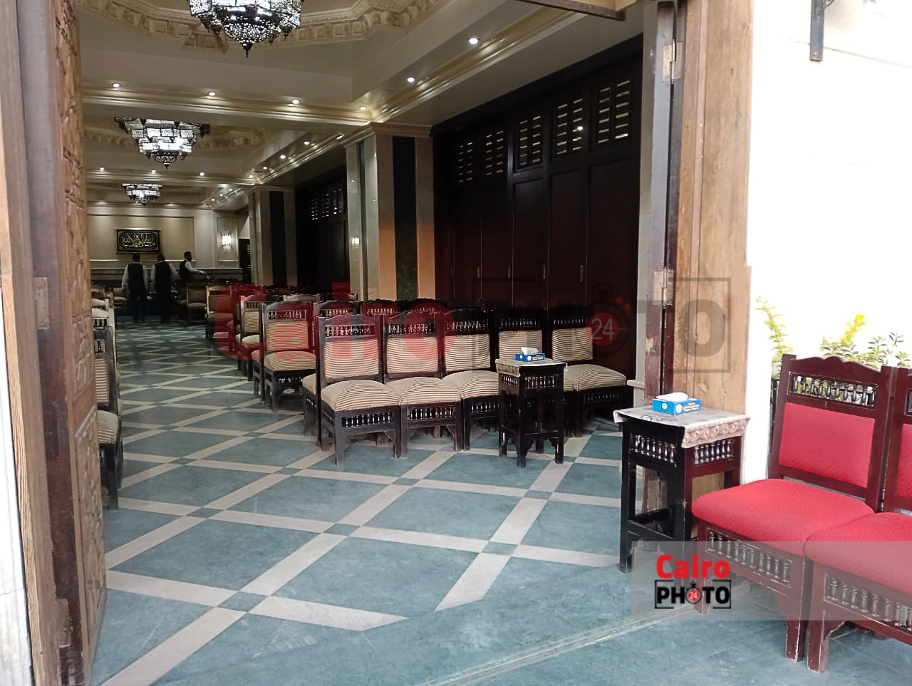 استعدادات عزاء والد ريم البارودي بمسجد أبو بكر الصديق