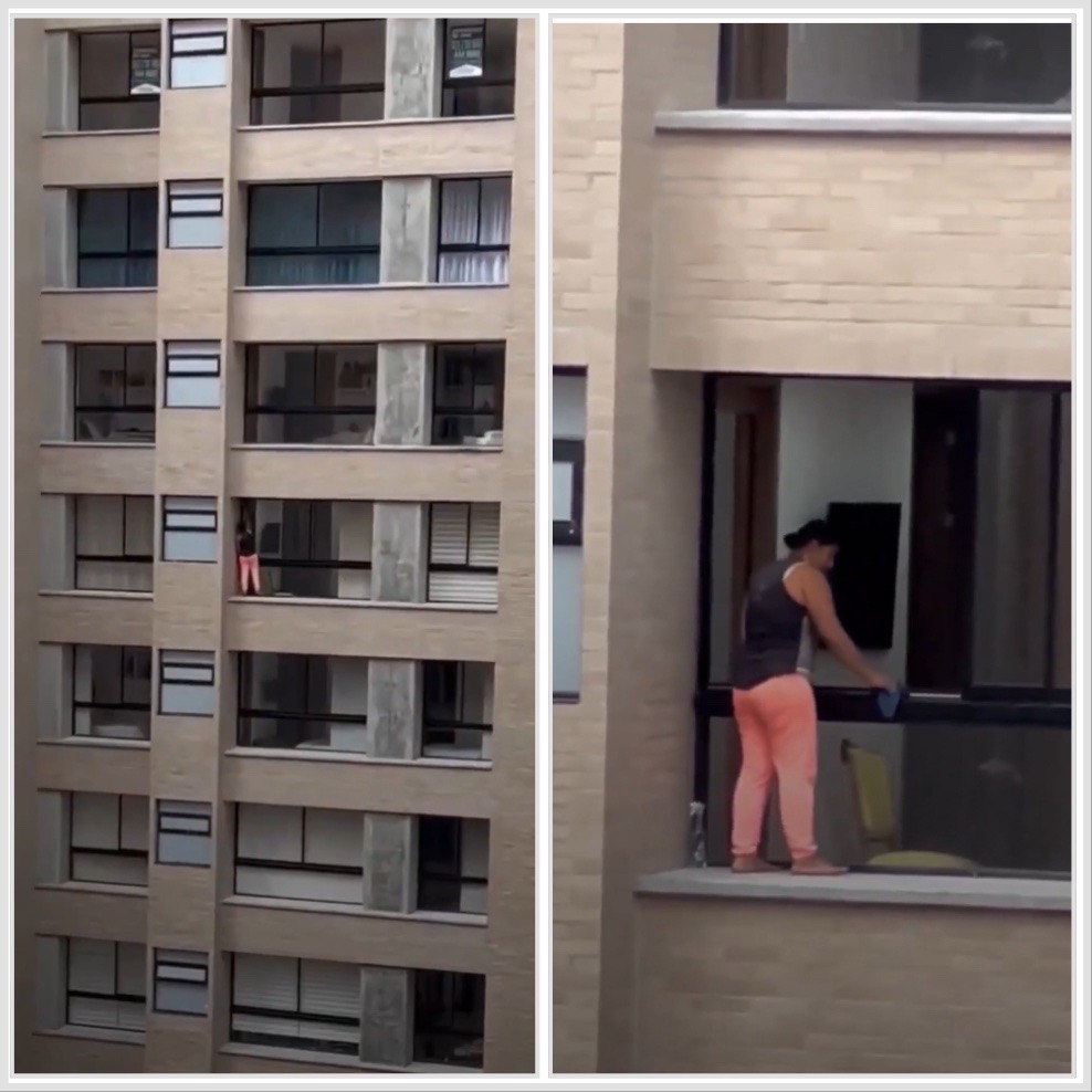 وتسبب مقطع الفيديو للمرأة التي تنظف نوافذ شقتها الشاهقة، وهي تقف على حافة بدون أي أمان في إصابة مُستخدمي الإنترنت بالصدمة والقلق.
