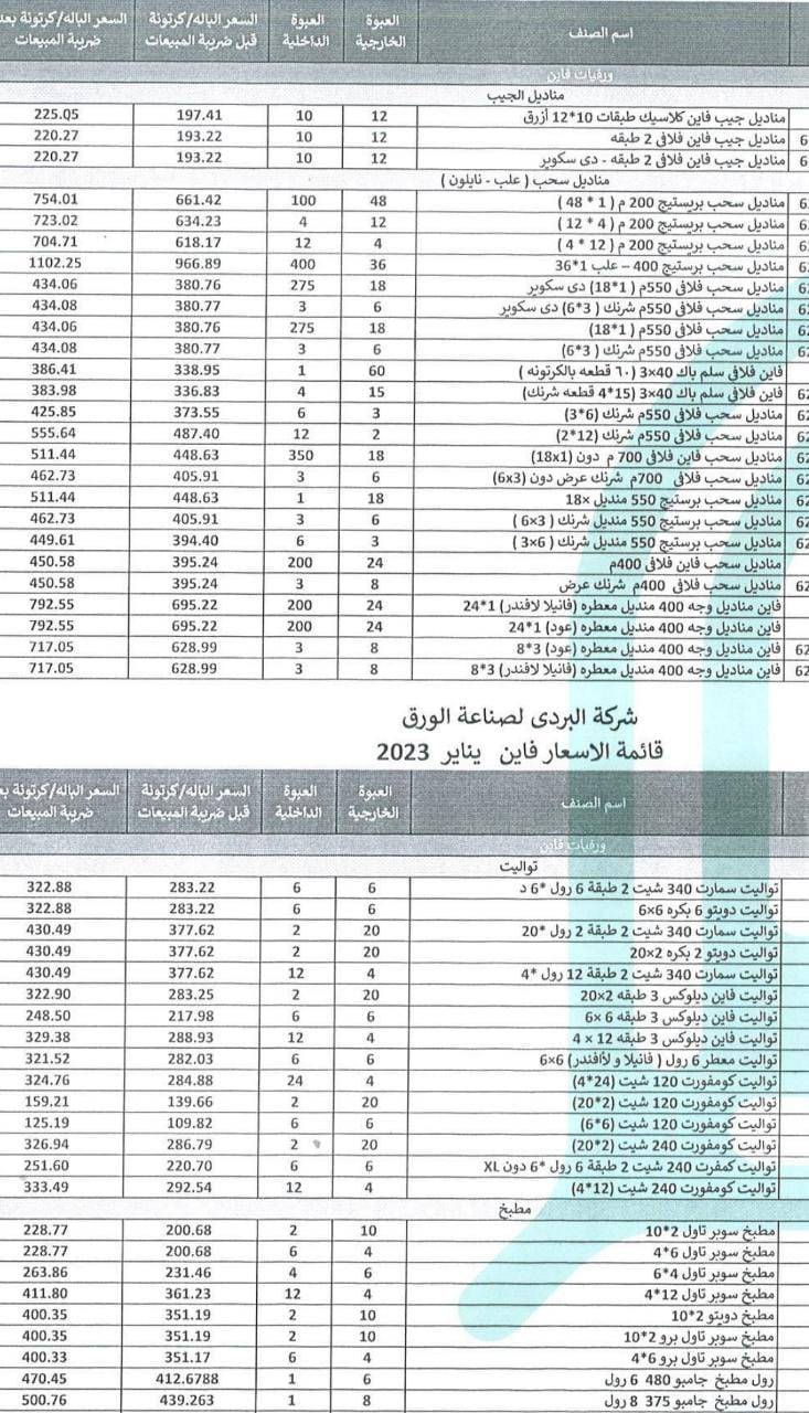 زيادة جديدة على أسعار المناديل الورقية بداية من 20 يناير