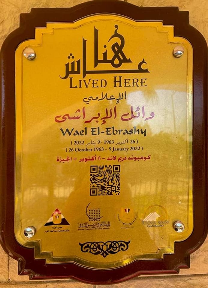أدرج الجهاز القومي للتنسيق الحضاري، اسم الإعلامي الراحل وائل الإبراشي، ضمن مشروع عاش هنا، حيث وضع لافتة تحمل اسمه وعنوانه على منزله في السادس من أكتوبر.