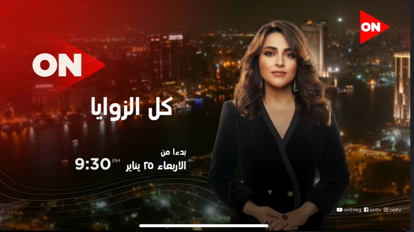 فيما نشرت قناة on برومو برنامج كل الزوايا، على صفحتها الرسمية على الفيسبوك، والمقرر انطلاقه عبر شاشتها بداية من يوم الأربعاء المقبل 25 يناير الجاري، في تمام الساعة التاسعة والنصف مساءً، بتوقيت القاهرة، لمناقشة جميع القضايا التي تمس حياة المواطنين من مختلف الزوايا ووجهات النظر.