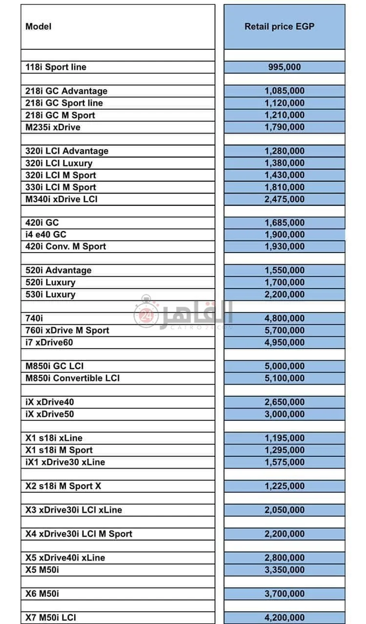 ارتفاع أسعار سيارات BMW موديل 2023 في مصر.. رسميا