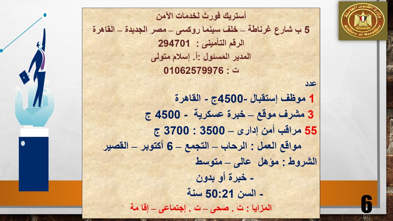 رواتب تصل لـ4000 جنيه.. القوى العاملة تعلن توافر فرص عمل بالقاهرة خلال يناير الجاري