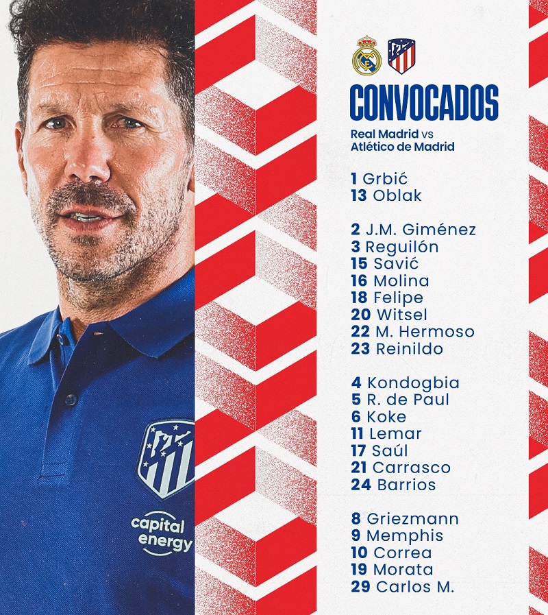 أما الجانب الآخر، قد يختار المدرب الأرجنتيني دييجو سيميوني تشكيل أتلتيكو مدريد التالي لمواجهة ريال مدريد اليوم في ربع نهائي كأس إسبانيا 2022/2023.