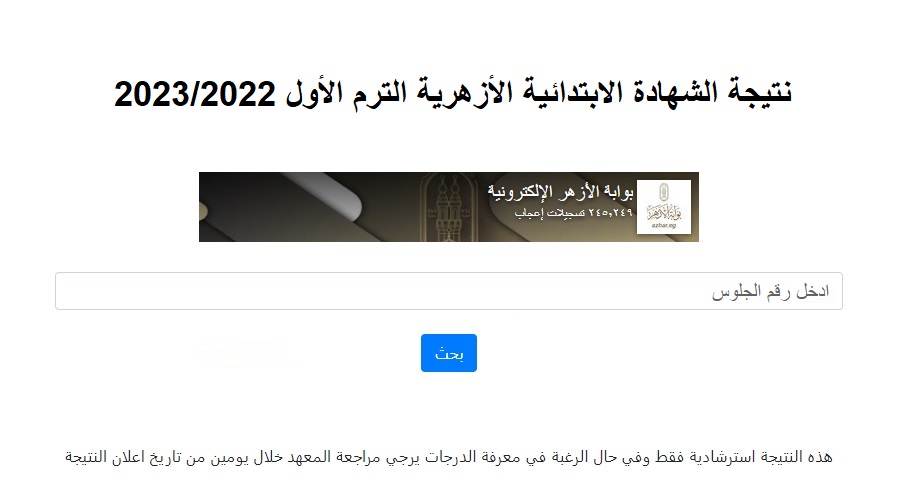 - الاستعلام عن نتيجة الشهادة الابتدائية الأزهرية