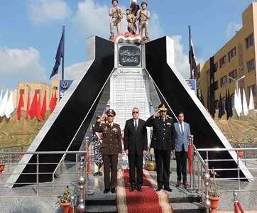 وضعت القيادات الأمنية بمديريات الأمن وقيادات القوات المسلحة والمحافظين، أكاليل الزهور على النصب التذكاري لشهداء الشرطة.
