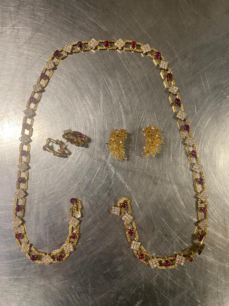 وتابعت جمارك مطار القاهرة: كلّف تامر قاسم مدير الجمرك لجنة مكونة من أحمد صبري وحسام الشافعي وكريم يوسف مأموري الجمرك بتفتيش جميع حقائب الراكب بدقة؛ ما أسفر عن العثور على علب فارغة أخرى، فكلّف كلًّا من هاني محمود وأحمد عادل فتحي مأموري الجمرك بتفتيش الراكب ذاتيًّا في حضور بكري عزب رئيس القسم بإدارة الأمن الجمركي؛ ما أسفر عن ضبط كيس من القماش داخله حلق من الذهب مرصع بفصوص من الأحجار الكريمة، وكيس آخر داخله حلق مرصع بفصوص أيضًا و"كوليه" من الذهب مرصع بفصوص ملونة من الأحجار الكريمة.