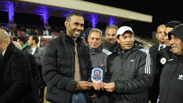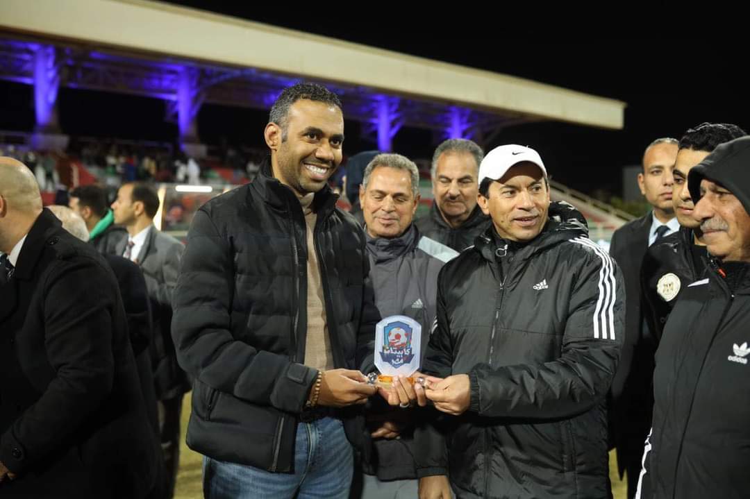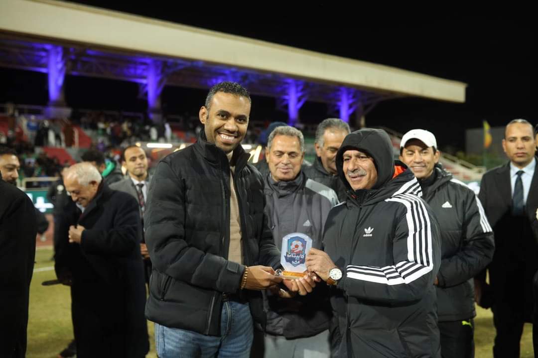 كرم الدكتور أشرف صبحي وزير الشباب والرياضة الكاتب الصحفي محمود المملوك رئيس تحرير القاهرة 24، على هامش زيارة معسكر كابيتانو مصر لاكتشاف المواهب في الكرة المصرية.