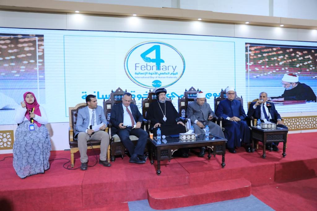 نظم الأزهر الشريف احتفالية كبرى، بجناحه بمعرض القاهرة الدولي للكتاب، في نسخته الـ 54، للاحتفال باليوم العالمي للأخوة الإنسانية، اليوم السبت، تحت عنوان: الأديان والحوار من أجل التعايش والسلام، حاضر فيها الدكتور محمد المحرصاوي، رئيس جامعة الأزهر السابق، والدكتور نظير عياد، الأمين العام لمجمع البحوث الإسلامية، والدكتور محمد أبو زيد الأمير، نائب رئيس جامعة الأزهر للوجه البحري، والأنبا إرميا، الأسقف العام ورئيس المركز الثقافي القبطي الأرثوذكسي، والدكتور عمرو الشوبكي، المفكر والكاتب السياسي، وأدارها الدكتور محمد البحراوي، المدرس بكلية الإعلام بجامعة الأزهر.
