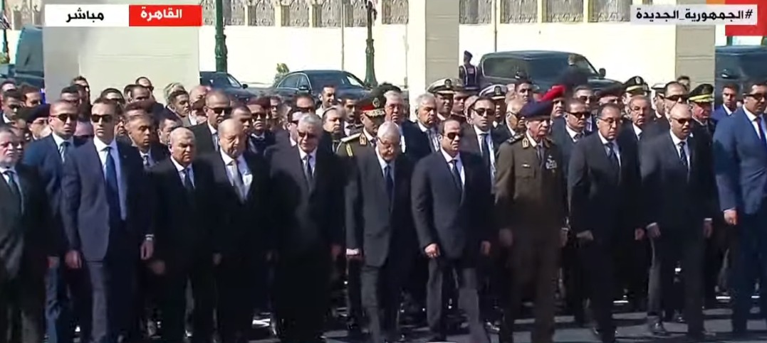 وجاء في مقدمة حضور تشييع جنازة المهندس الراحل شريف إسماعيل، من مسجد المشير طنطاوي، الرئيس عبد الفتاح السيسي، رئيس الجمهورية.