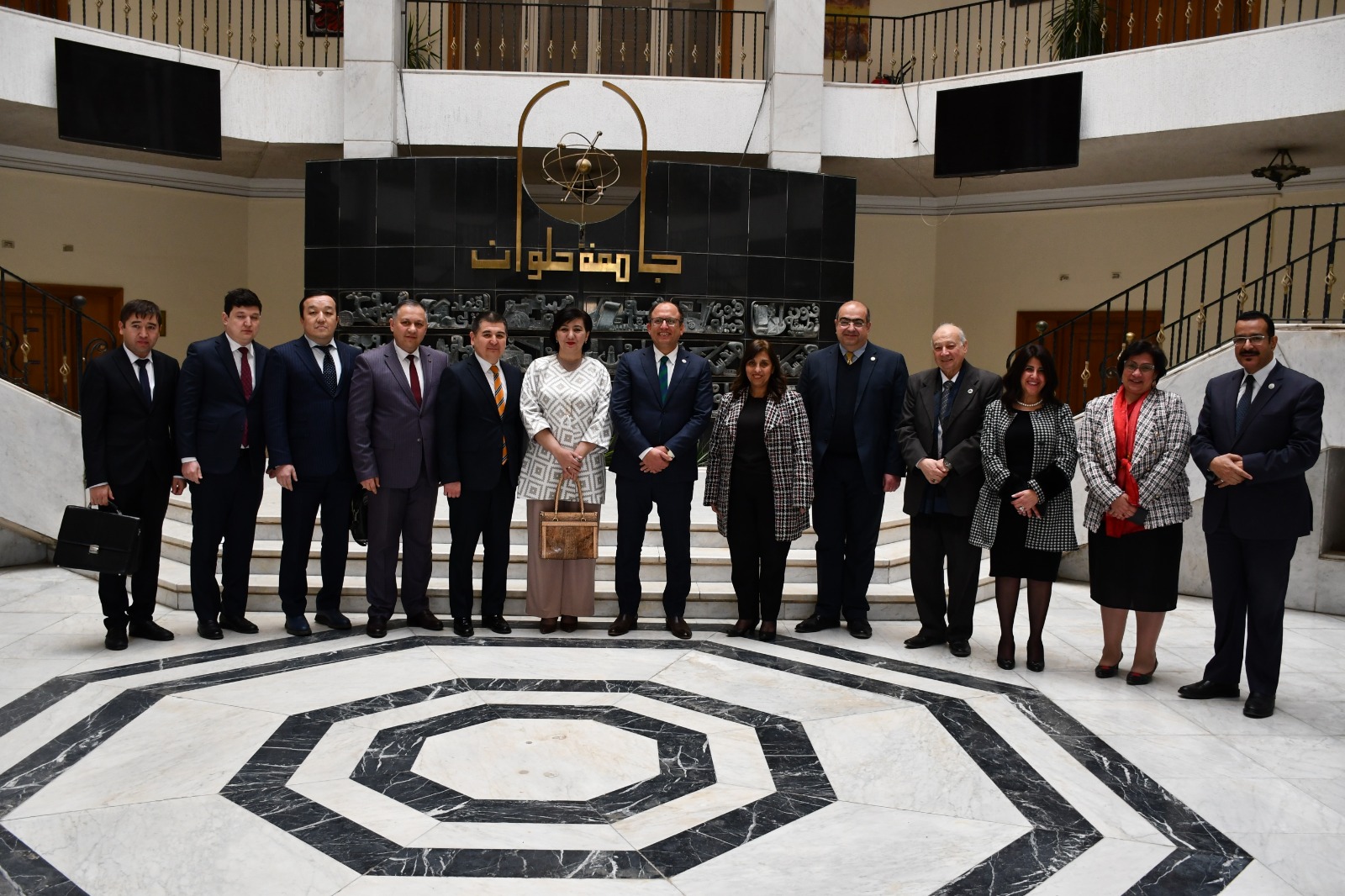 استقبل الدكتور السيد قنديل رئيس جامعة حلوان، جولتشيخرة ريخسييفا رئيس جامعة طشقند الحكومية للدراسات الشرقية الاوزبكستانية، و نادر عبد الله يوف نائب رئيس الجامعة للشئون الدولية والوفد المرافق لهما، وذلك لبحث سبل التعاون المشترك بين الجامعتين.
