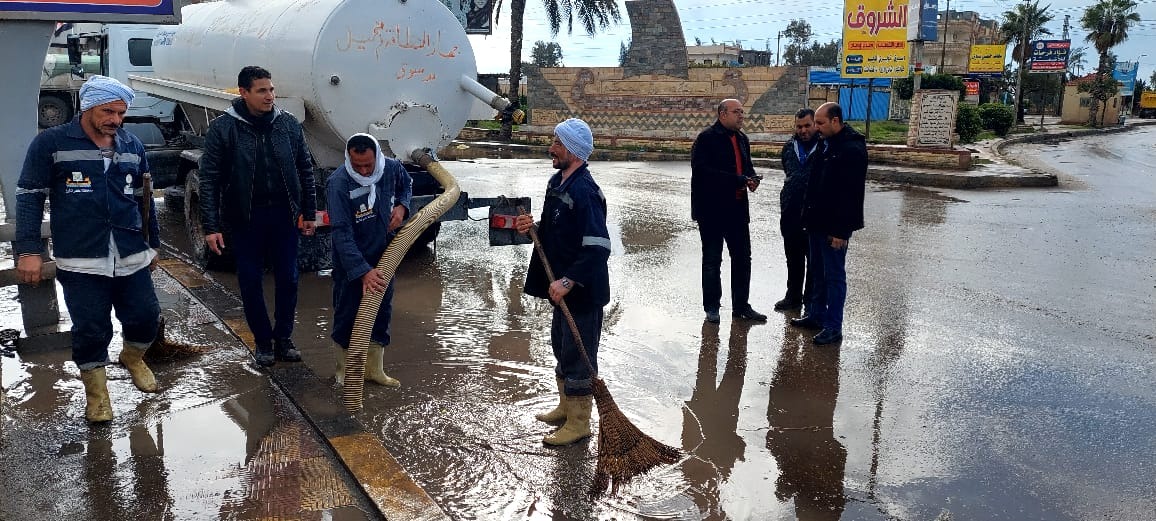 وتابع وائل فرج، رئيس مدينة البرلس، أعمال رفع مياه الأمطار من شوارع المدينة، وحول المصالح الحكومية والمدارس، موجها بالاستمرار بالشوارع لحين رفع كفاءة مياه الأمطار من كافة الميادين، وبرافد الطريق الدولى الساحلى.