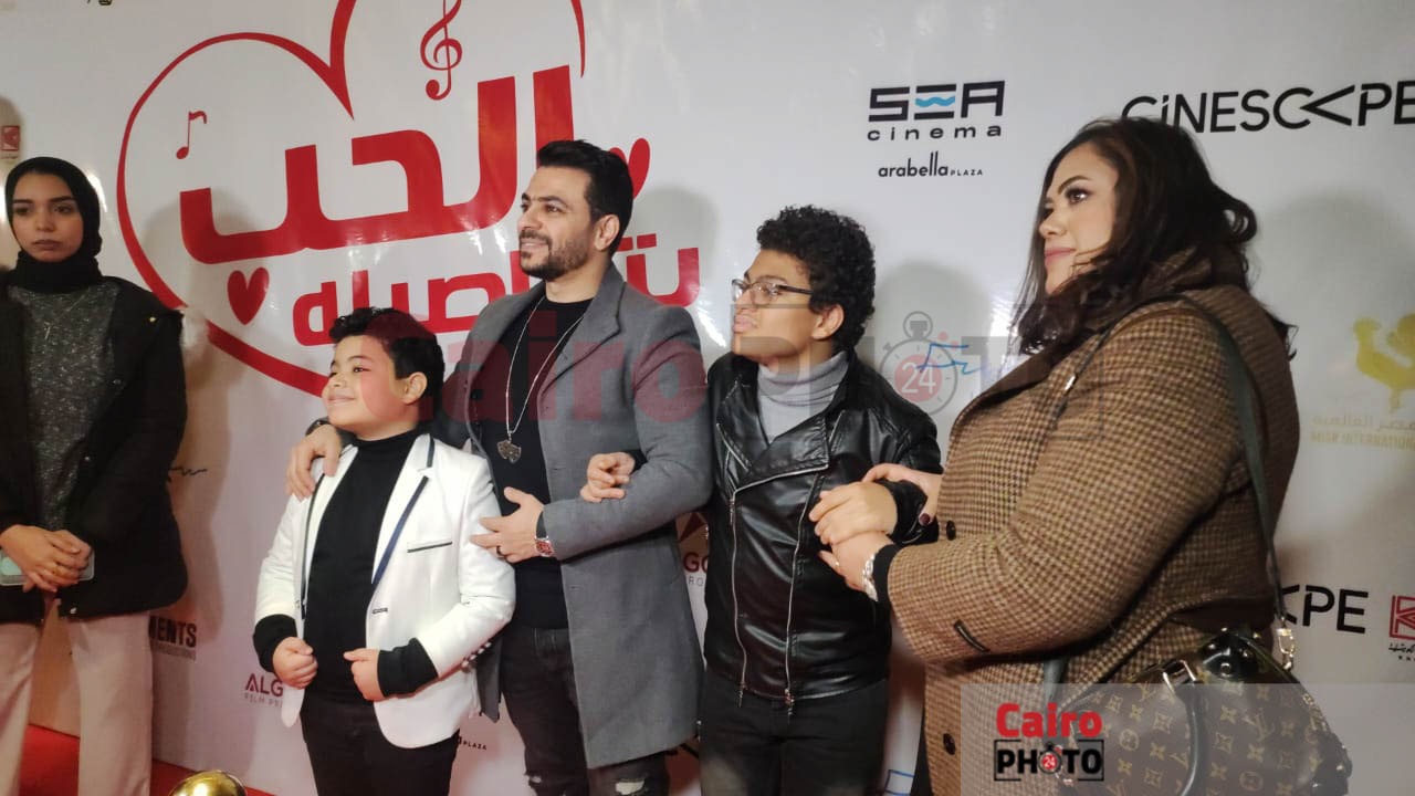 كريم الحسيني رفقة أولاده وزوجته في العرض الخاص لفيلم الحب بتفاصيله