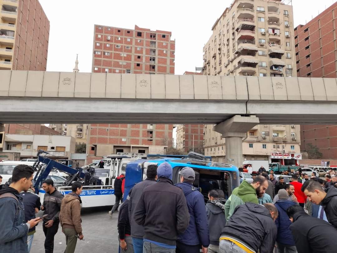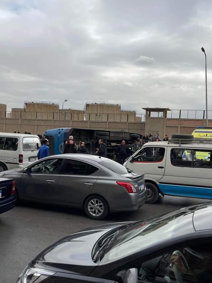 انقلاب أتوبيس نقل عام بشارع جسر السويس ووقوع إصابات| صور