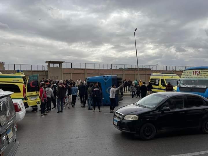 وقالت مصادر، إن هناك إصابات حدثت لبعض المواطنين جراء انقلاب الأتوبيس، ولم يحدد حتى الآن أي جديد عن الحادث.. وسنوافيكم بالتفاصيل.