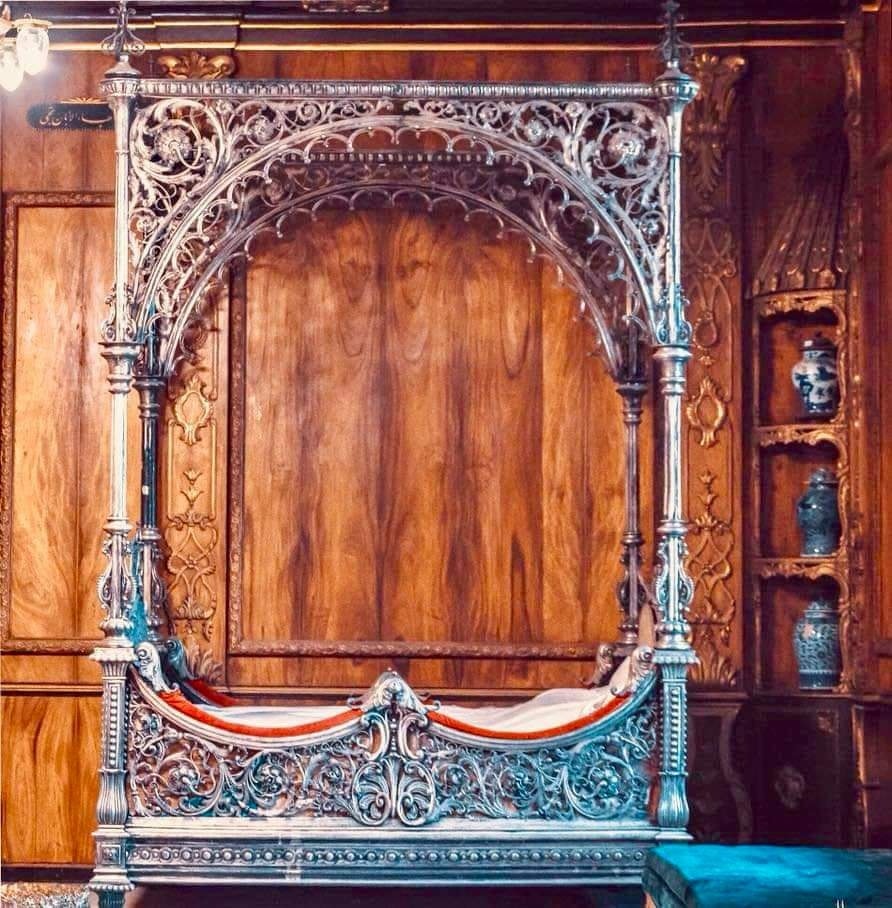 والسرير وزنة نحو 850 كيلو ويتميز بالجمال والروعة في النقوش والزخارف، وربما السبب أنه الوحيد الباقي أن الأمير محمد علي توفيق أوصى بقصره وما يحويه من كنوز أن يتم تحويله لمتحف بعد وفاته حتى من قبل 1952.