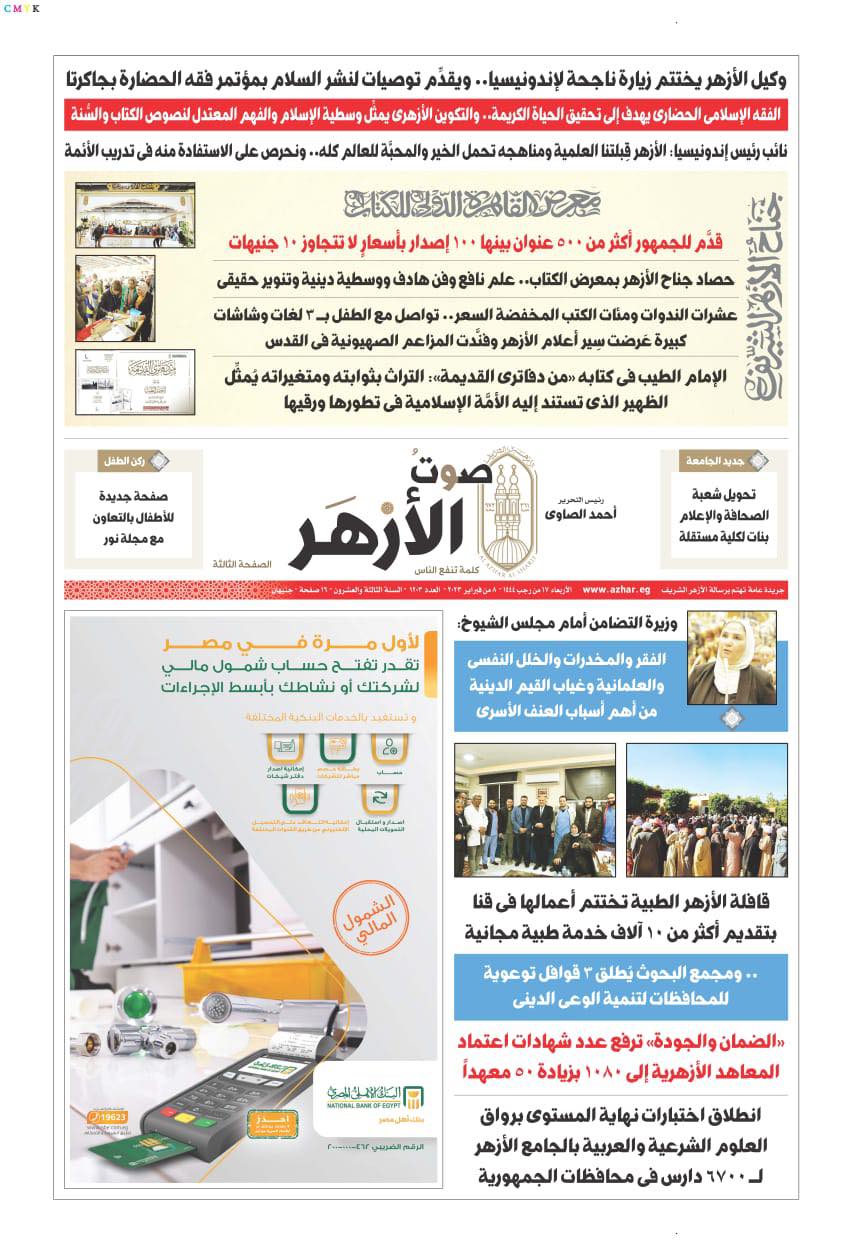 أيضُا سلطت الجريدة الضوء على تصريحات الإمام الأكبر الدكتور أحمد الطيب، شيخ الأزهر، حول زلزال سوريا وتركيا، حيث دعا العالم للانتفاضة من أجل إغاثة المحاصرين والمنكوبين بسبب زلزال سوريا وتركيا، كما أشارت إلى أن الأزهر الشريف قدم التعازي في ضحايا الزلزال المدمر ويعرب عن تضامنه الشديد مع أهالي الضحايا.