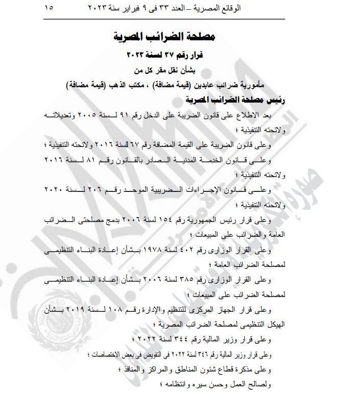 الجريدة الرسمية: نقل مكتب ضرائب الذهب من عابدين إلى باب اللوق