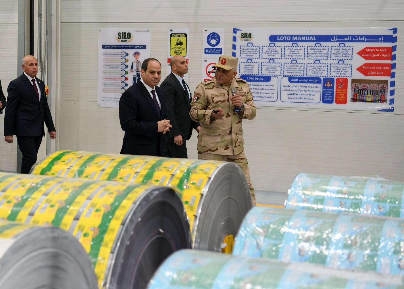 أجري الرئيس عبد الفتاح السيسي، رئيس الجمهورية، اليوم الخميس، جولة تفقدية داخل مصانع سايلو فودز، خلال افتتاح المرحلة الثانية من المدينة الصناعية بمدينة السادات في المنوفية.