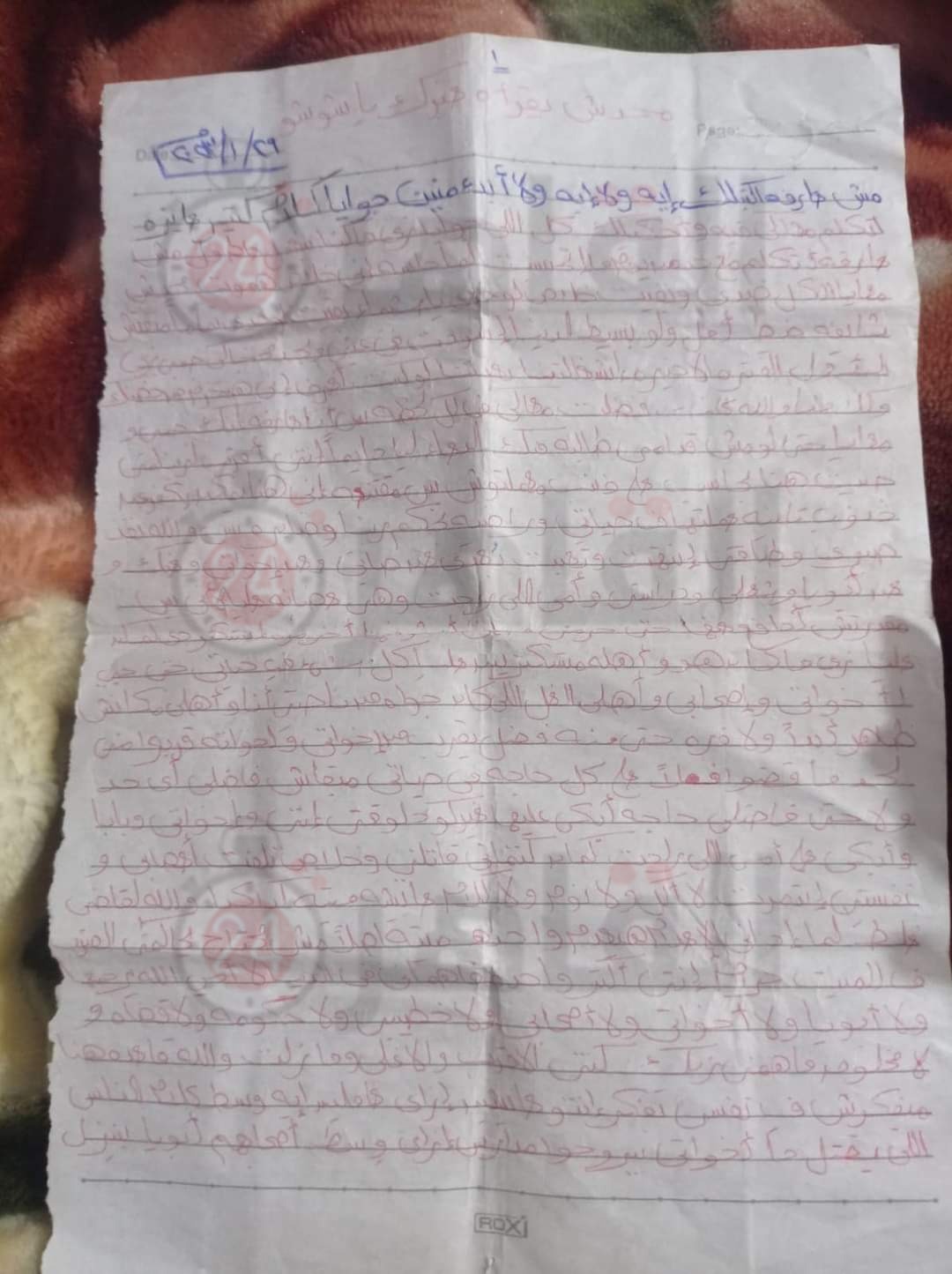 حصل القاهرة 24 على خطابات أرسلتها نورهان خليل المتهمة بقتل أمها بـ محافظة بورسعيد من داخل السجن، كتبتها بخط يدها، تتحدث فيها إلى أسرتها وخطيبها.
