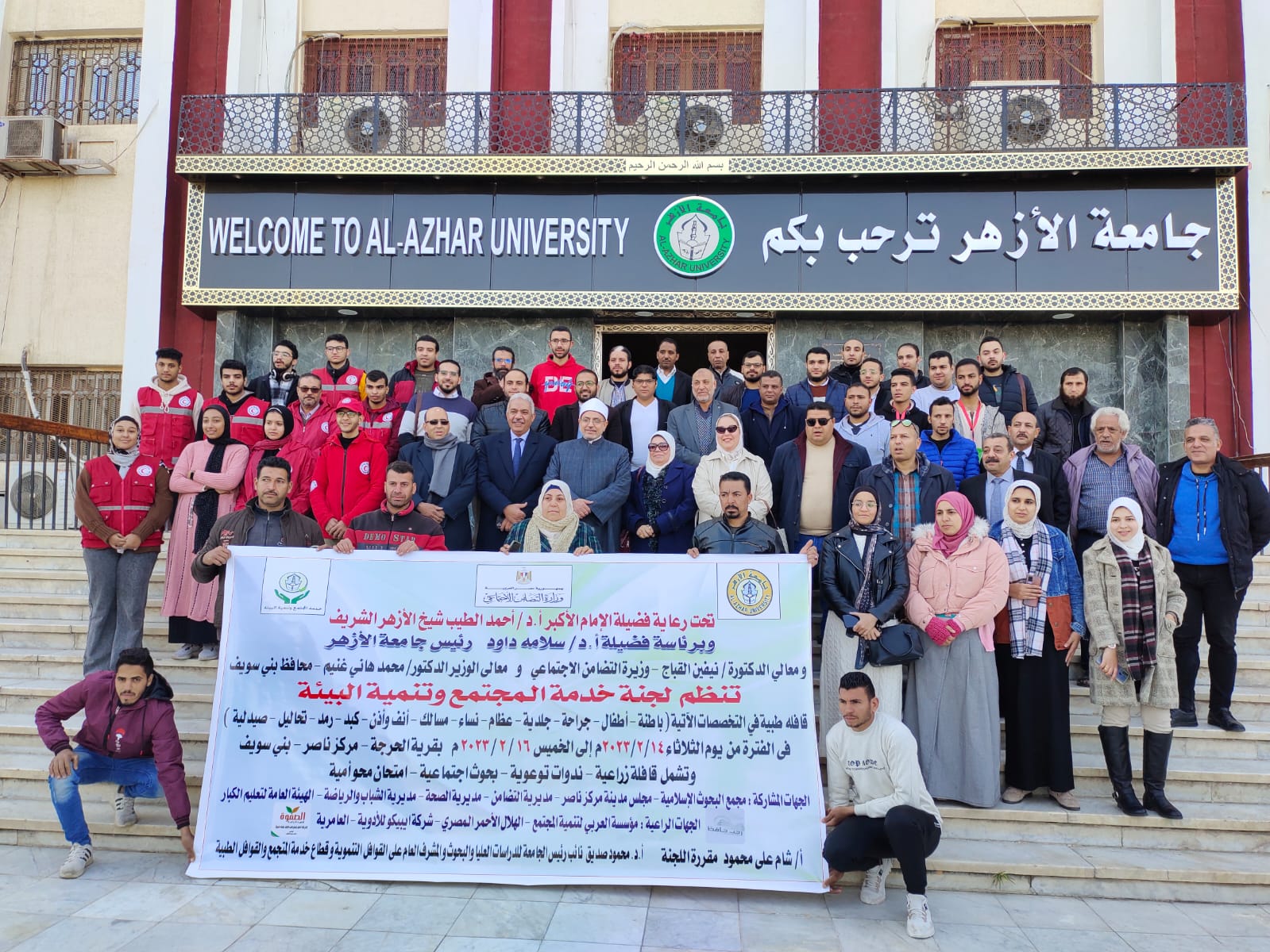 قافلة جامعة الأزهر التنموية تنطلق نحو قرية الحرجه بمحافظة بني سويف